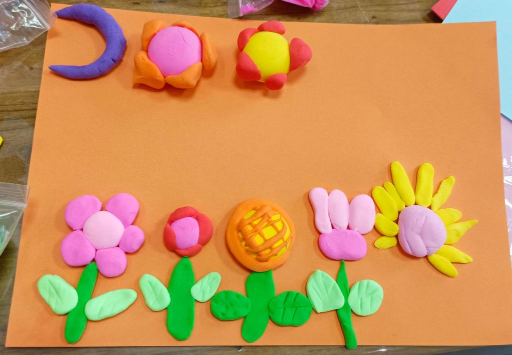 对于低龄学生,课程核心在于激发兴趣与基础形态认知。志愿者通过趣味互动导入,引导学生观察并制作太阳、花朵等基础图形。针对表达受限的学生,志愿者采用非语言引导与正向鼓励相结合的方式,鼓励他们从搓圆、压扁到组合造型,当小手渐渐熟练,黏土便插上了想象的翅膀,层层叠叠的小花、爱吃的草莓蛋糕、酷酷的小汽车、立体的卡通人物在孩子们手中悄然诞生,孩子们小手沾满了各色黏土,脸上绽放的笑容比作品更加灿烂。