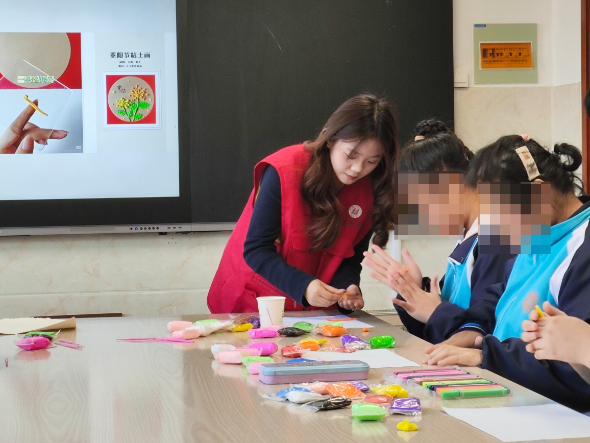 10月29日,美术系青年志愿者服务队走进淄川区特教中心,开展“以美为伴,艺同成长”系列美育志愿服务。活动以“重阳敬老,指尖寄深情”为主题,立足学生认知特点与动手能力,精心设计太空泥创作、纸杯改造两大实践环节,将传统文化传播与美育实践有机结合,引导孩子们在艺术创作中感悟孝亲敬老的美好情感。