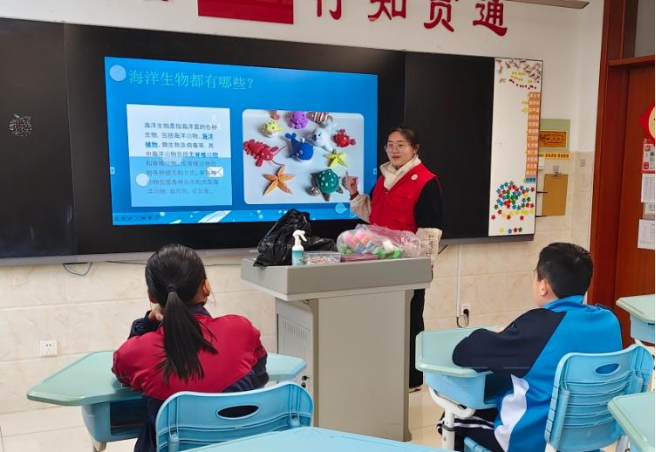 活动现场,志愿者充分发挥专业优势,通过展示生动的海洋影像与启发式提问,迅速点燃了孩子们对海底世界的创作热情。从基础的揉、搓、捏、压到复杂的色彩搭配与造型塑造,志愿者们耐心示范,将专业知识转化为易学易懂的趣味实践,引导孩子们逐步构建起心中的奇幻海洋。