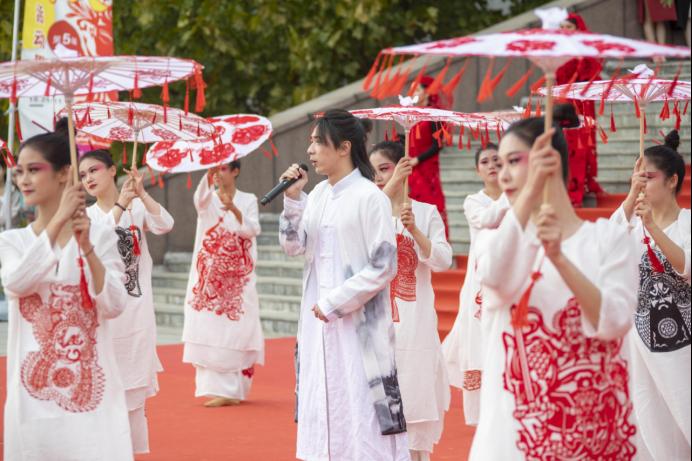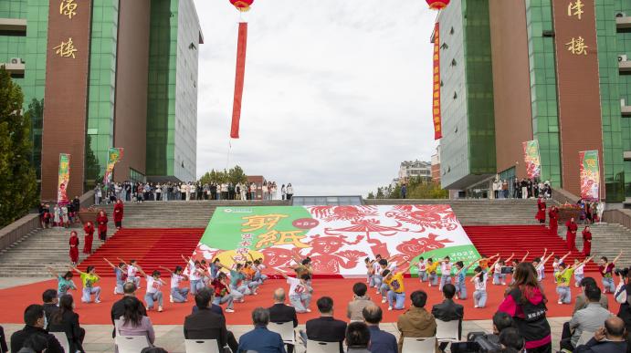 由学前教育学院、音乐系师生带来的精彩演出将开幕式推向了高潮,一幅幅精致长卷,一件件文创服装,一幕幕精湛表演,使剪纸艺术穿越千年,跃然于纸张上、服饰间、动作中,为在场观众奉上了一场“非遗盛宴”。