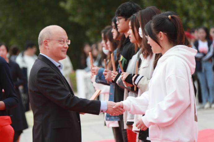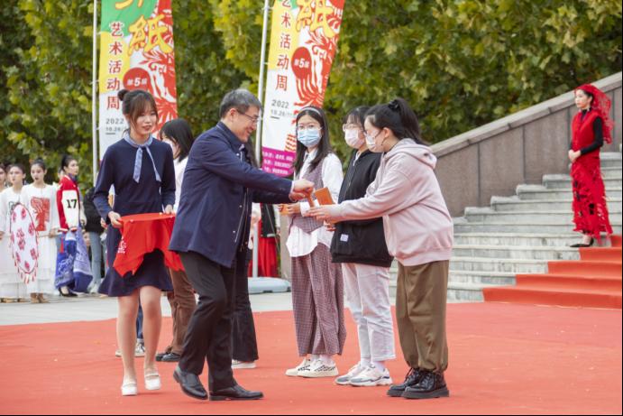 开幕式还设置了颁奖和节目表演环节。学校党委书记于军、校长孙启友、副校长周巧玲、副校长尹玉箫分别为首届剪纸创意大赛的特邀作品奖、一等奖、二等奖、三等奖获得者颁发了获奖证书。