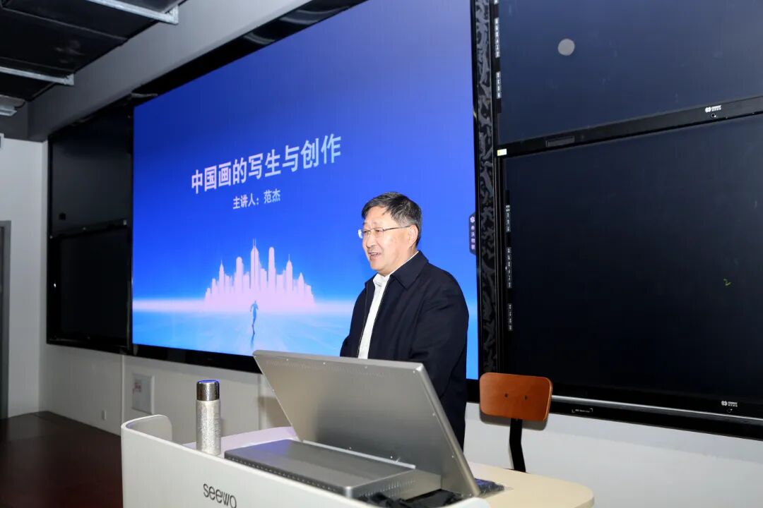 11月12日下午,山东省美术家协会副主席、淄博市美术家协会主席范杰教授应邀来校,在格物楼303室为师生带来一场题为“中国画的写生与创作”的学术讲座。学校党委书记满军主持讲座并致辞。