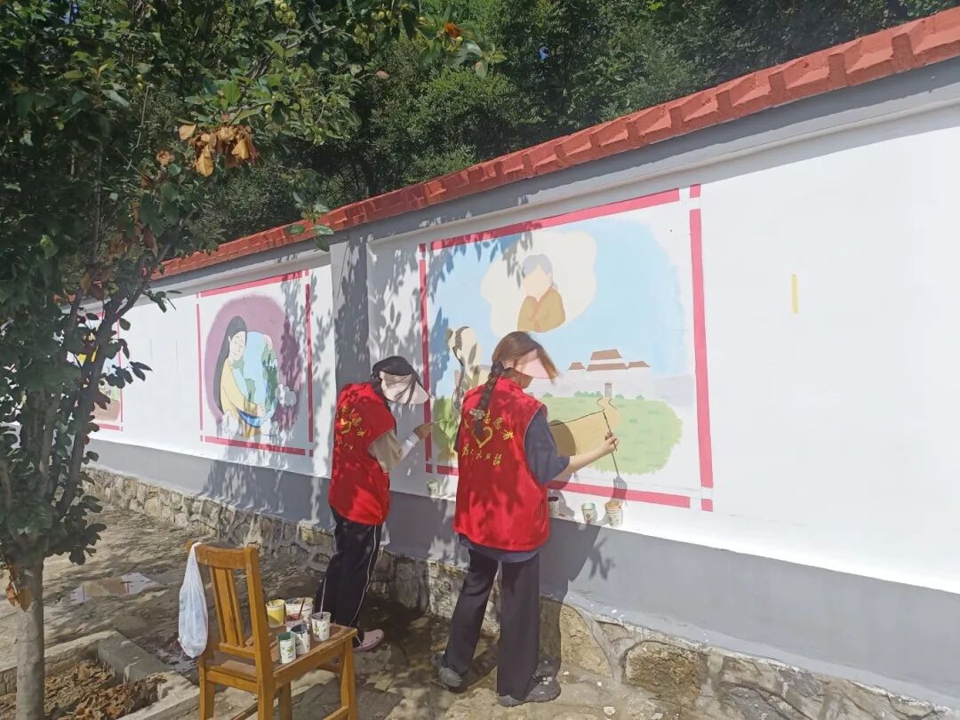 美术系本次入选的项目,紧密结合专业特色与地方需求,旨在探寻一条以美育作为核心驱动力的创新创业路径。项目立足两个核心服务,一是主题性墙绘创作与公共空间美化;二是体系化美育(美术、非遗艺术)课程培训与指导。构建了独特的“创作实践”与“教育传播”陪跑模式。