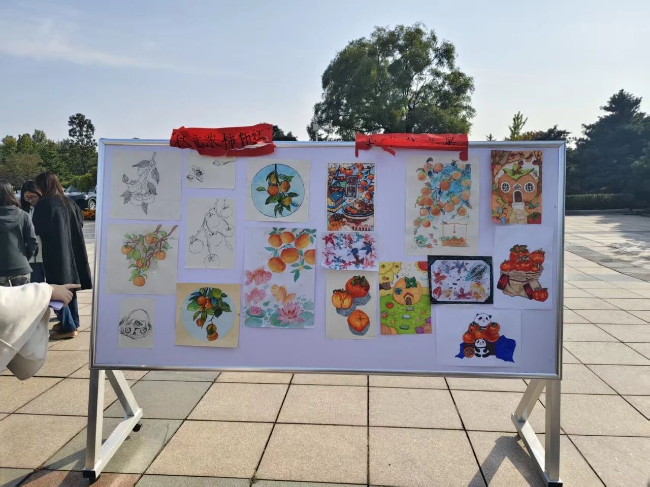 同学们为活动现场带来了多幅围绕“柿子节”创作的创意绘画和插画作品。这些作品色彩绚丽、构思精巧,有的以写实手法展现柿子挂满枝头的丰收盛景,有的则通过抽象艺术表达对“柿柿如意”美好寓意的理解,吸引了众多师生驻足欣赏。
