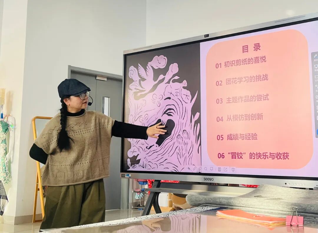 1月9日,王继红老师开展了“一网打尽——剪纸技艺全解析”讲座,系统梳理了剪纸的概念、基础技法及常见吉祥符号的样式与应用方法,带大家欣赏了剪纸与当代生活结合的创意应用作品,打破了大家对于剪纸的固有认知,感受到剪纸艺术的无限可能。讲座不仅吸引了校内师生,周边十余所小学、幼儿园的教师也积极参与。讲座成功搭建起校地联动的平台,让高校非遗切实服务于地方基础教育及文化建设。