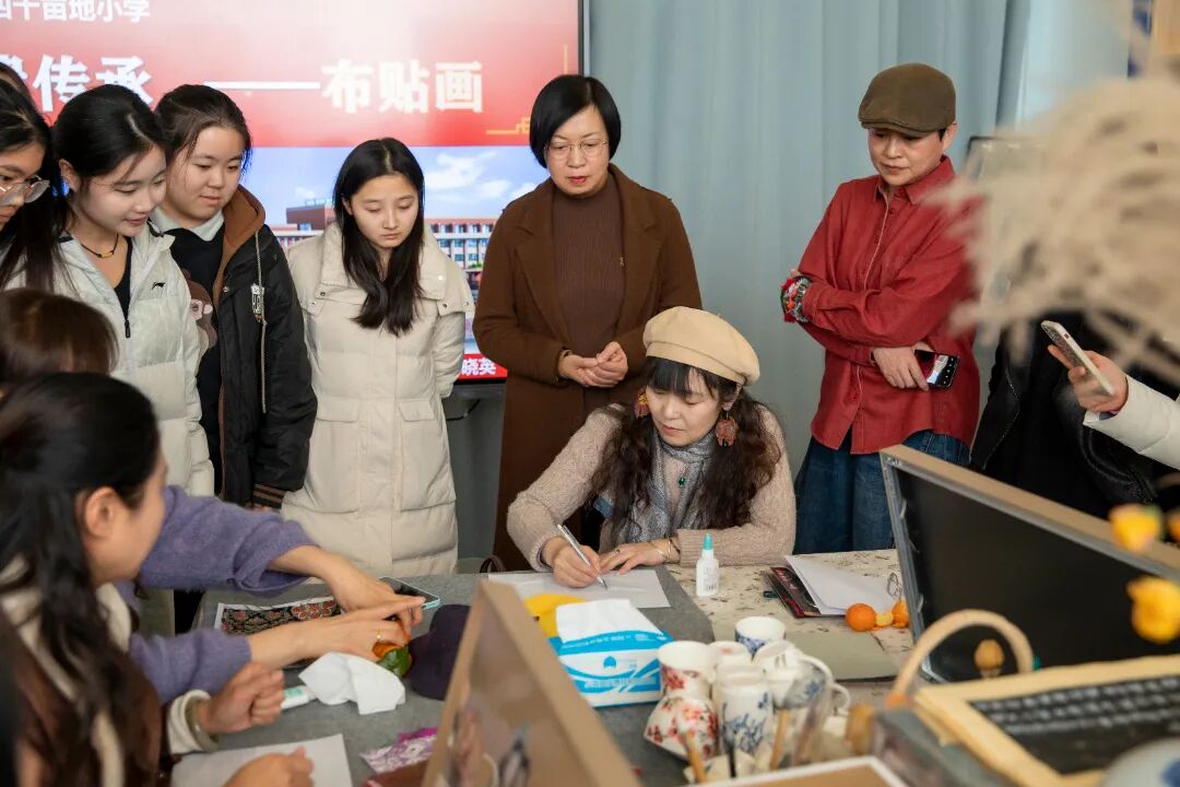 1月7日,活动邀请博山四十亩地小学韩晓英老师来校分享布贴画技艺。韩老师以剪刀为笔,碎布为墨,结合博山贴布制作技艺,拓展了布面剪纸的观赏性和艺术性,作品兼具剪纸的灵动与刺绣的精致,又自带布料的肌理质感,画风质朴,具有独特韵味。分享过程中,韩老师以个人作品为例,为大家从图案设计、材料选择、制作过程及技法等方面进行了全方位讲解与实操演示,不少师生当场尝试制作简易布贴画作品,活动氛围融洽,收获满满。