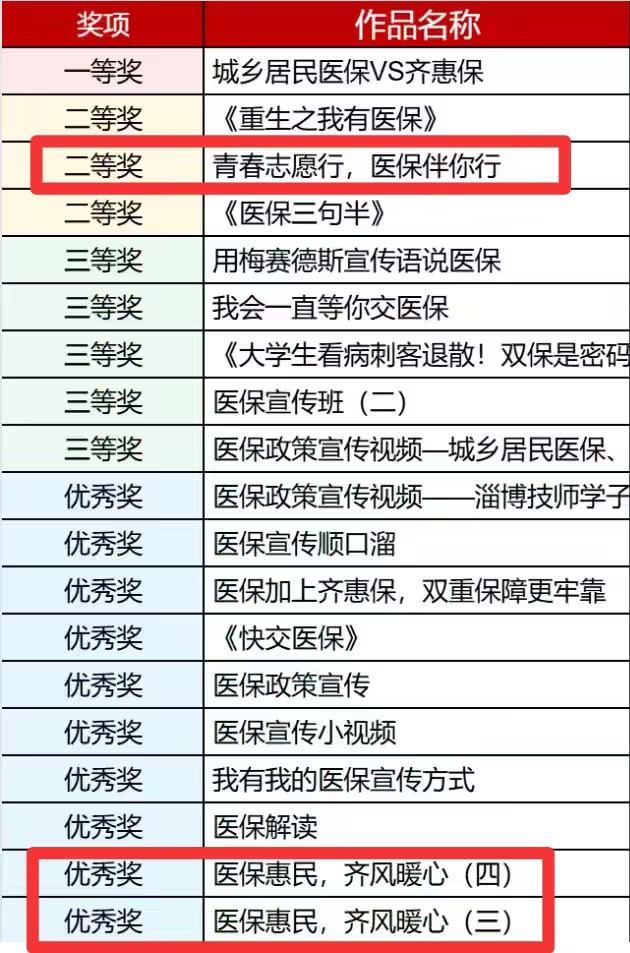 近日,由团市委、市医保局联合举办的“淄博市医疗政策宣讲”短视频创作比赛圆满落下帷幕。淄博师专美术系医疗惠民志愿队宣讲视频获得二等奖一项、优秀奖两项。