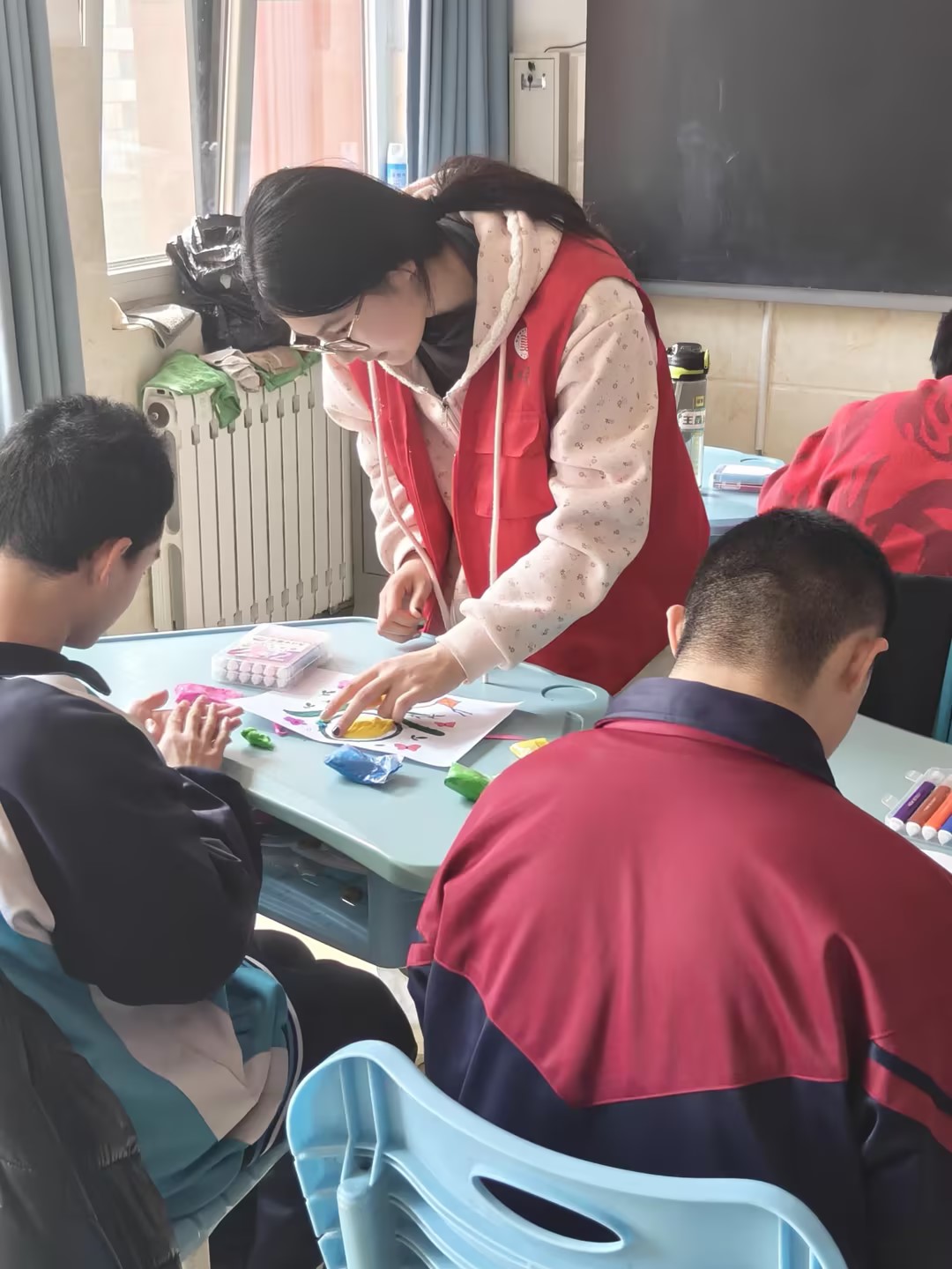 3月25日,美术系青年志愿者服务队走进淄川区特教中心,持续开展“以美为伴,艺同成长”美育志愿服务活动。本次活动以“站在春天里”为主题,通过彩泥制作与手工拼贴的趣味形式,带领特教儿童沉浸式感知春日美好,在艺术创作的乐趣中收获心灵滋养。