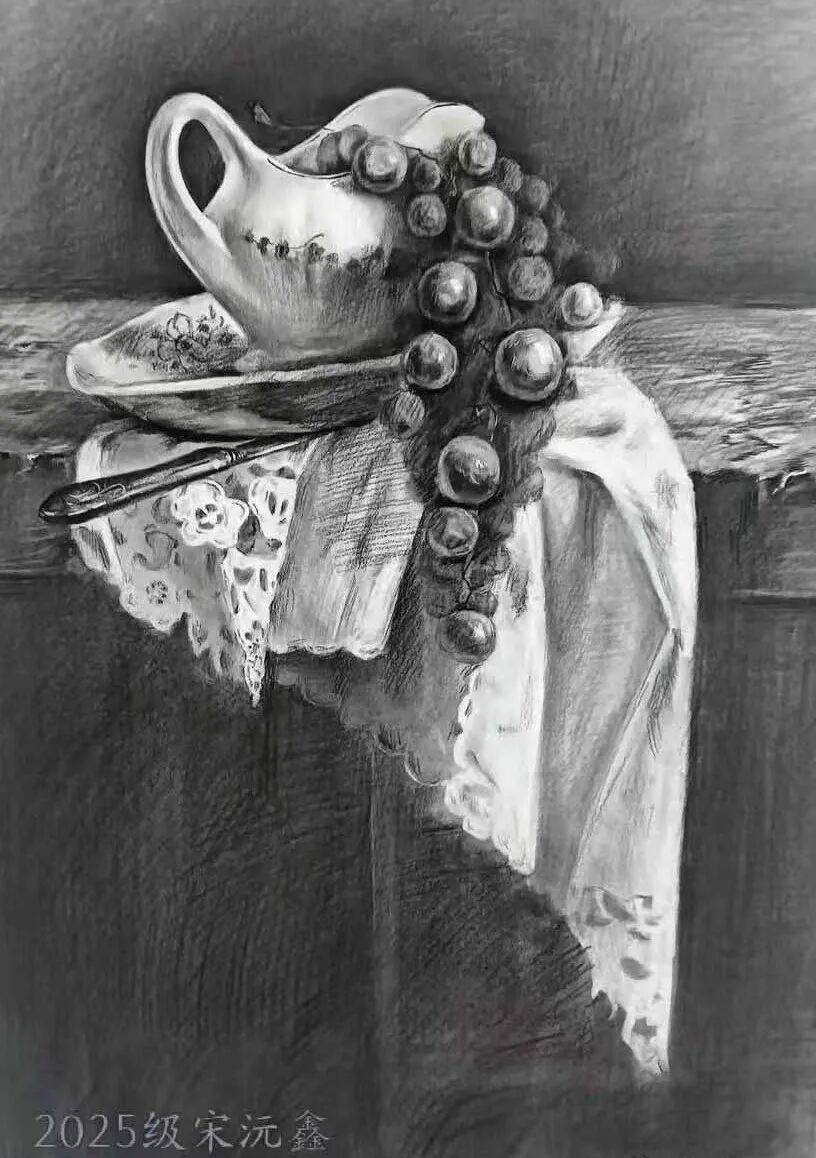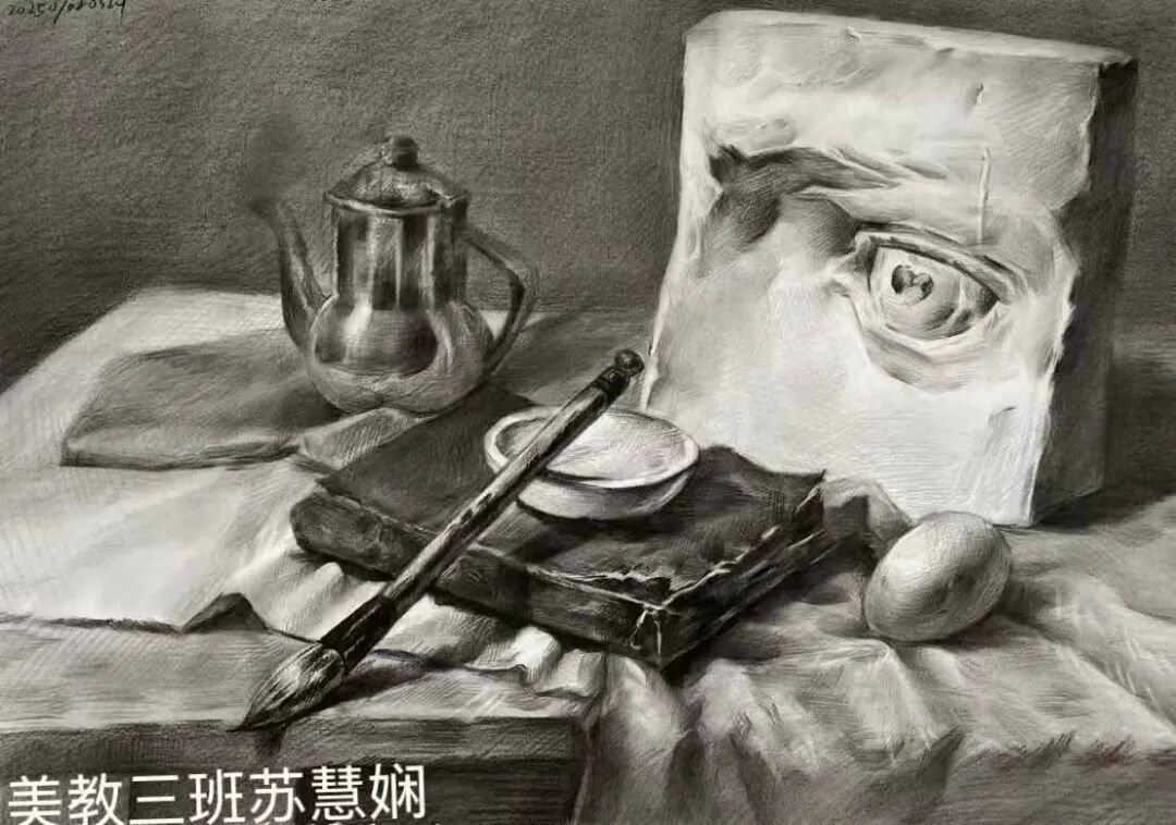 本次展览展出美术教育专业2025级三个班的素描基础课程优秀作品。作品凝聚学子心血,尽显艺术初心与表达实力。盼借此次展示,广纳师生建议,为素描学习之路锚定新方向。