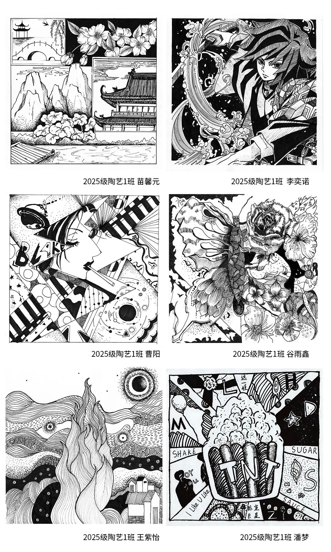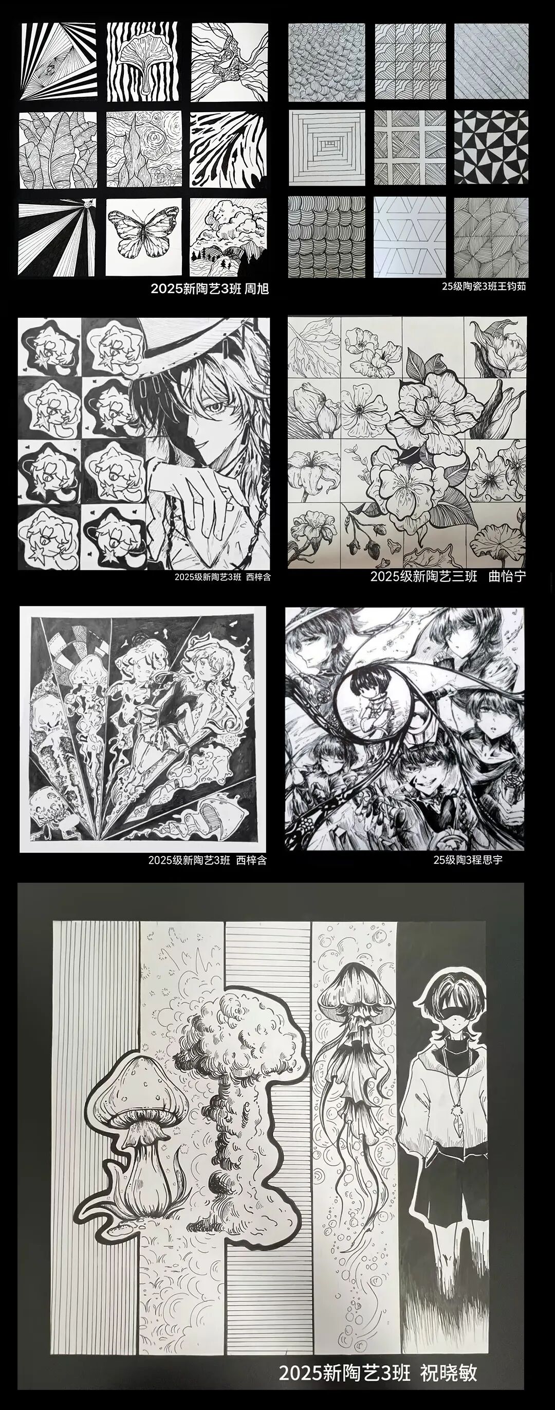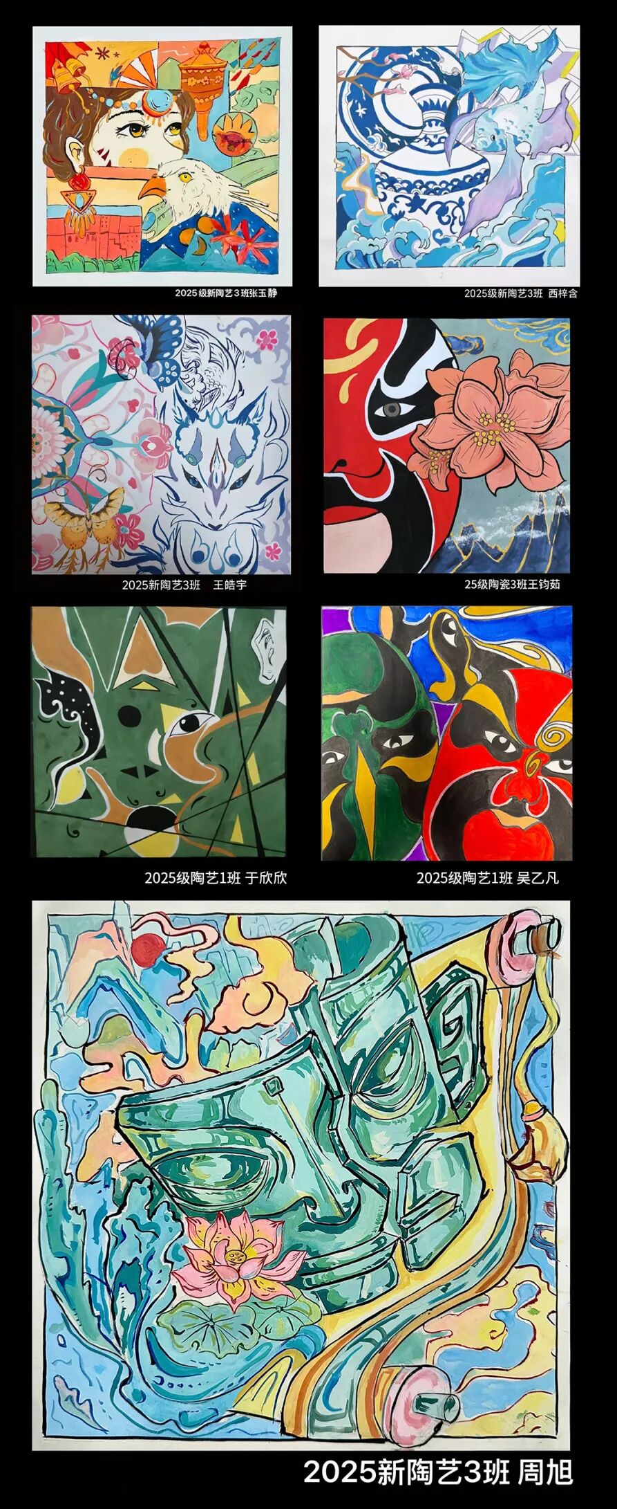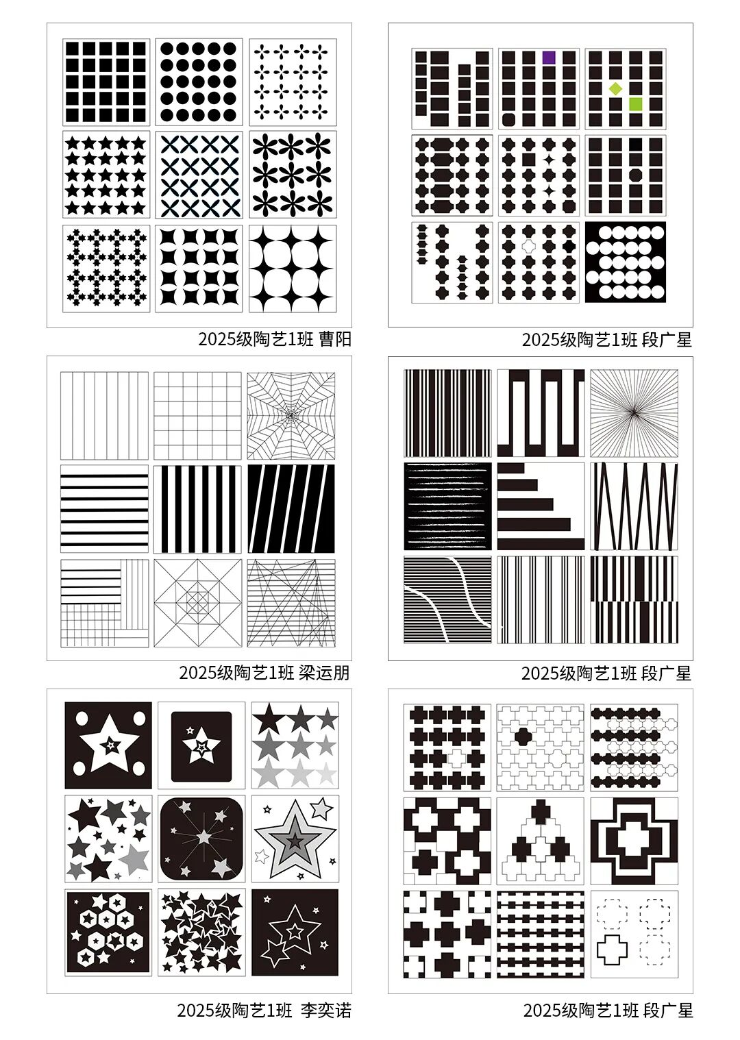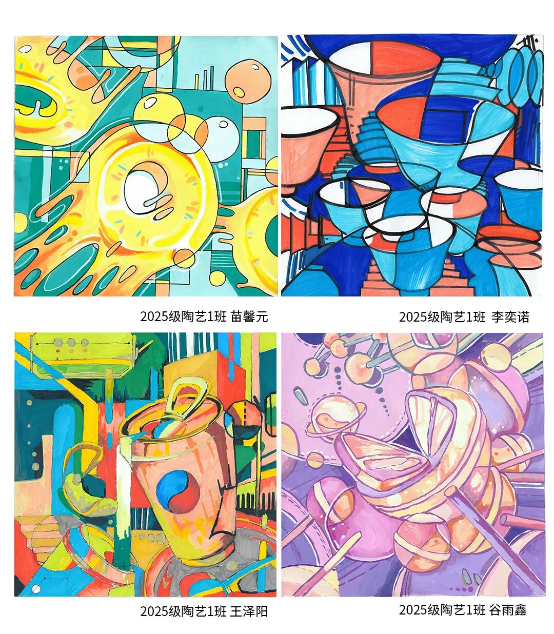 《设计基础》课程的落幕,绝非视觉探索的终点,而是专业课学习创作的真正起点,愿同学们带着课程赋予的视觉理性与创造意识,在未来的陶瓷设计及更多创作领域中,持续解构形态、重组元素、迭代创新,让构成思维成为驱动创意无限生长的力量。借此次展览,期待诸位师长同窗不吝分享见解,共促提升。