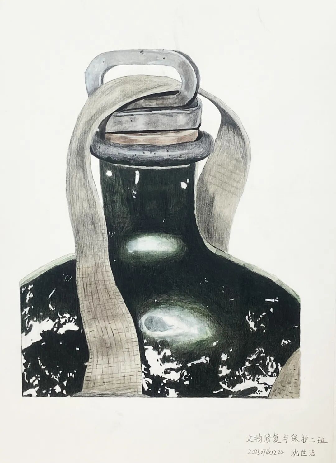 “造型基础”是文保专业入学后的首门专业课程。针对学生普遍缺乏美术基础的实际情况,课程在充分研讨与借鉴优秀教学经验的基础上,结合专业特点,引入“精微素描”作为主要教学方式。该课程以具象写实为路径,强调对物体结构、比例与细节的精细观察与严谨表达,着力培养学生的观察力、专注力与耐心,为后续专业学习奠定坚实基础。