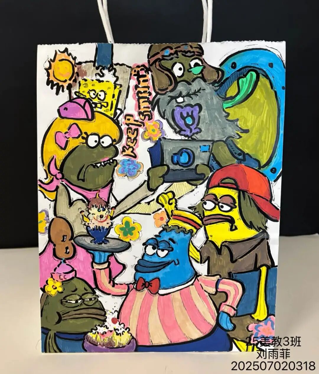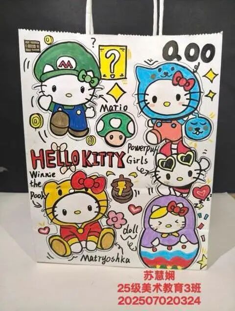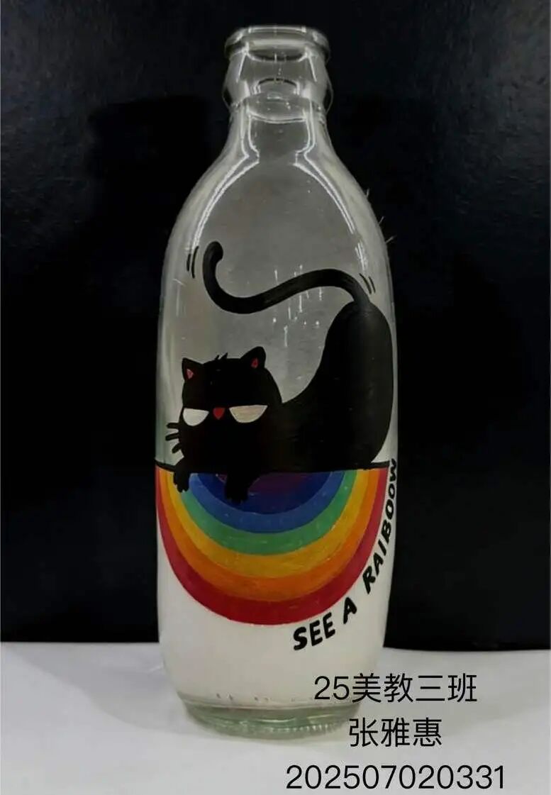 教学中,教师引导学生以个人兴趣为起点,融合城市文化、地方特色、卡通元素、构成形式及手工技法,从素材收集到图形定稿,探索多元设计路径,最终将创意应用于饮料瓶与购物袋等实物。这一实践过程深化了学生对图形语言的理解,突破了思维定式,有效激发了创作热情与实践兴趣。