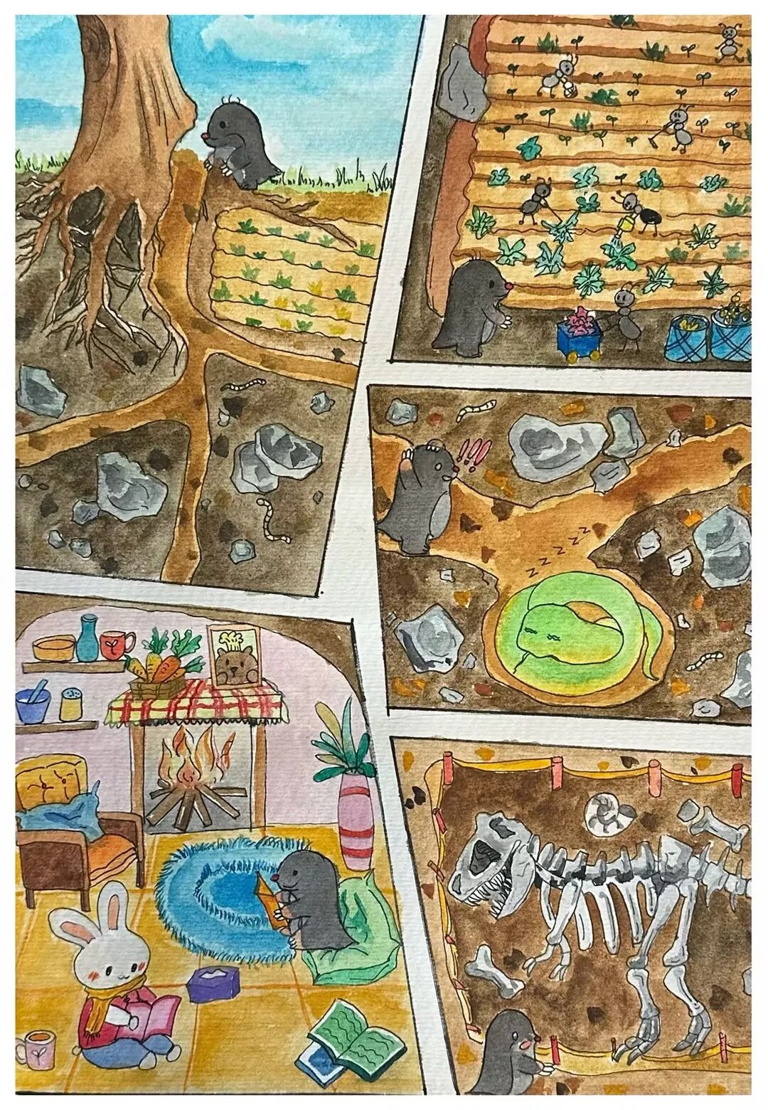 这些作品或许尚显稚嫩,却真实记录了教育者最初的跋涉:当学生们尝试用儿童的逻辑观察世界,用绘本的页面承载情感,用色彩的节奏唤醒共鸣时,美育已不仅仅是一门课程,更是一场关于成长与守护的温柔实践。
